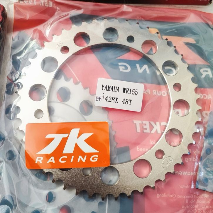 Gear set 428 TK Racing WR 155 set rantai SSS Merah