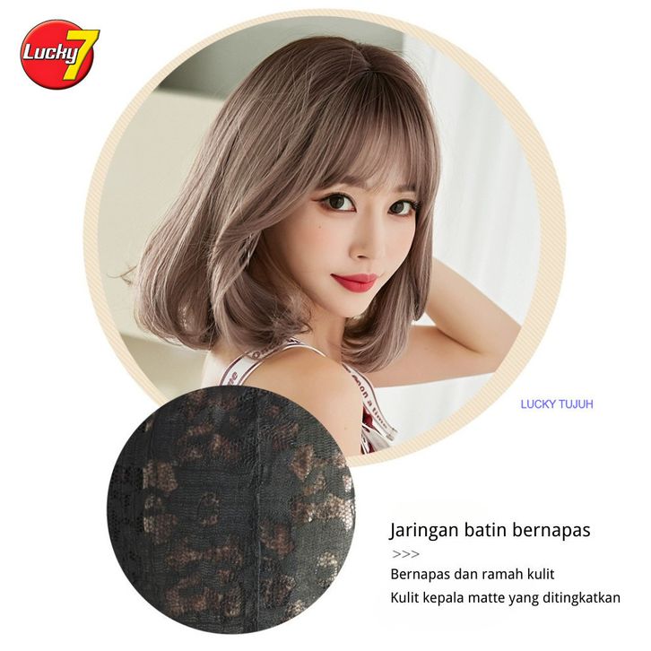 Wig Rambut Wanita Pria Asli C0D/LuckyTujuh/Wig Bob Alami 14inch/Gelombang Leher Tulang Selangka/Volume 3X Natural/Gaya