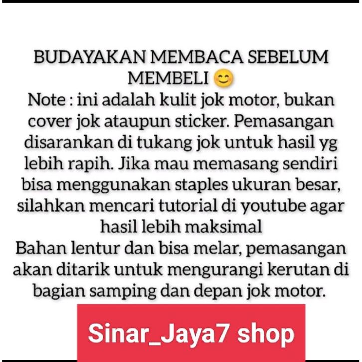 Kulit Jok Motor MOTIF EROPA SLIM , press Busa. Qulitas bahan PREMIUM , "PASANG PAKAI STEPLESS"