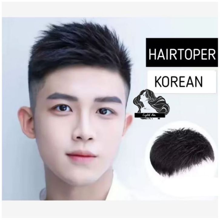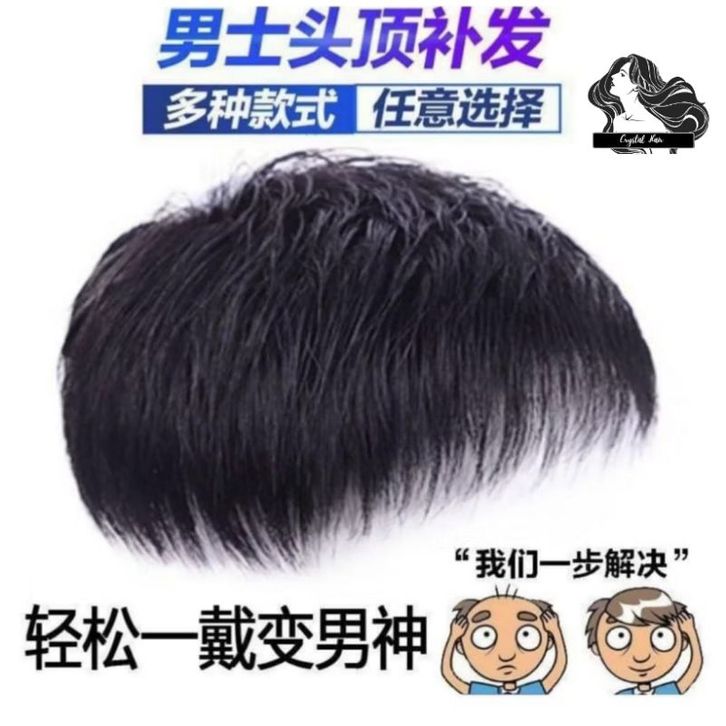 Wig Rambut Wanita Pria Asli Hairtop Penutup Botak Pria Rambut Pendek Warna Hitam Toupee Penebal Rambut Pria Penutup Bot