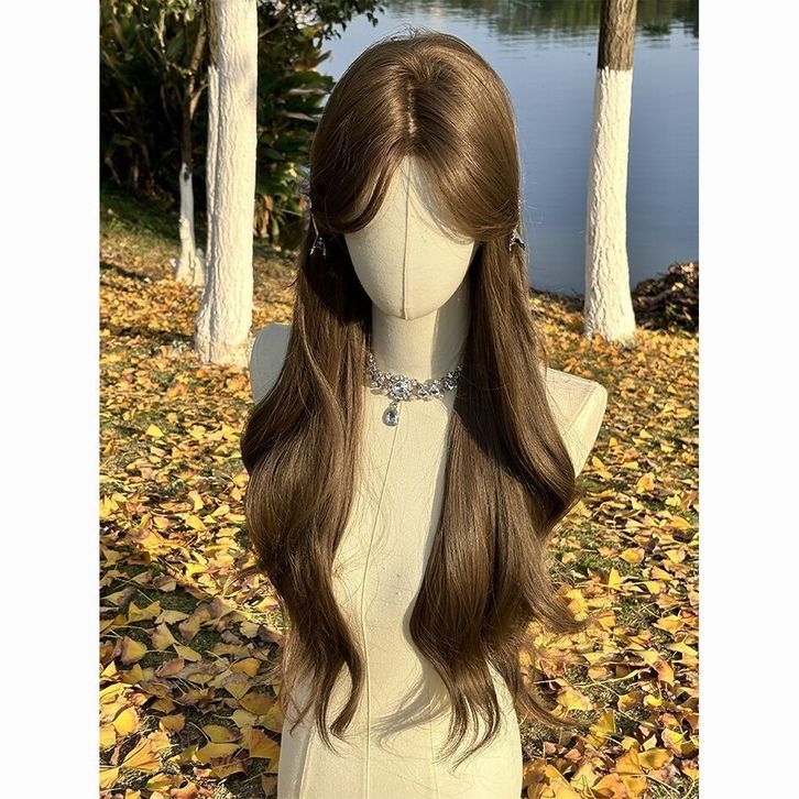 Wig Rambut Wanita Pria Asli Poni Prancis Panjang keriting Rambut palsu wanita panjang Wig wanita full kepala Wig daily
