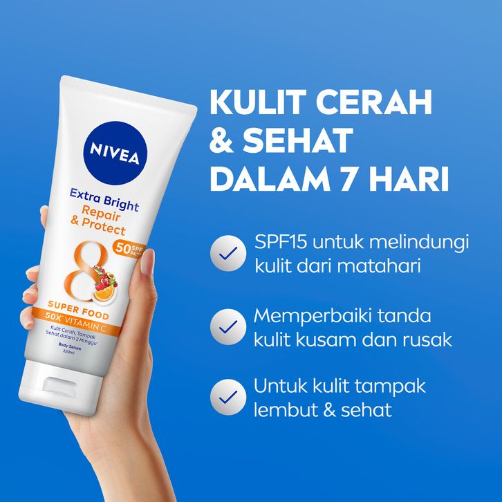 Body Lotion Pemutih Badan NIVEA Body Serum Extra Bright Repair & Protect SPF50 320ml Handbody sunblock mencerahkan kuli