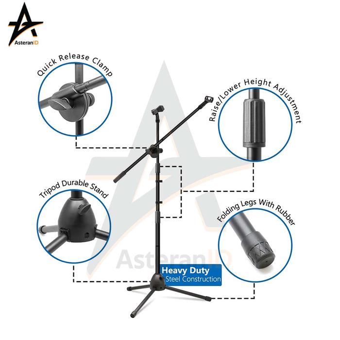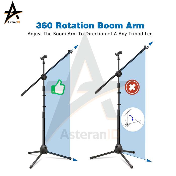 Tri- Microphone Stand + 360 rotating boom arm Plus Mic holder Handphone Kamera - StandMic-OMSK-6KBK