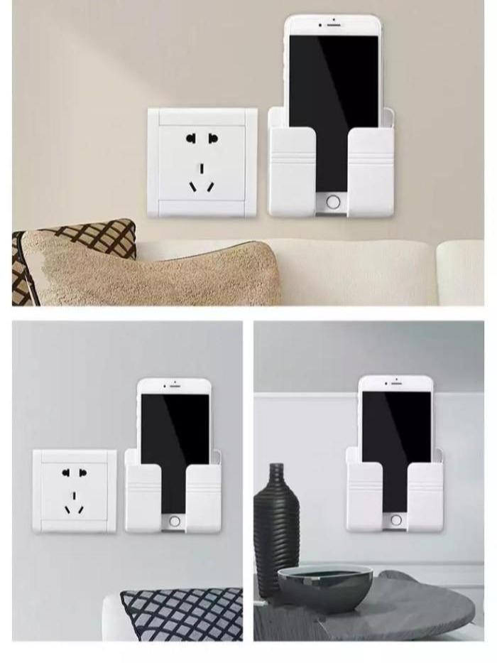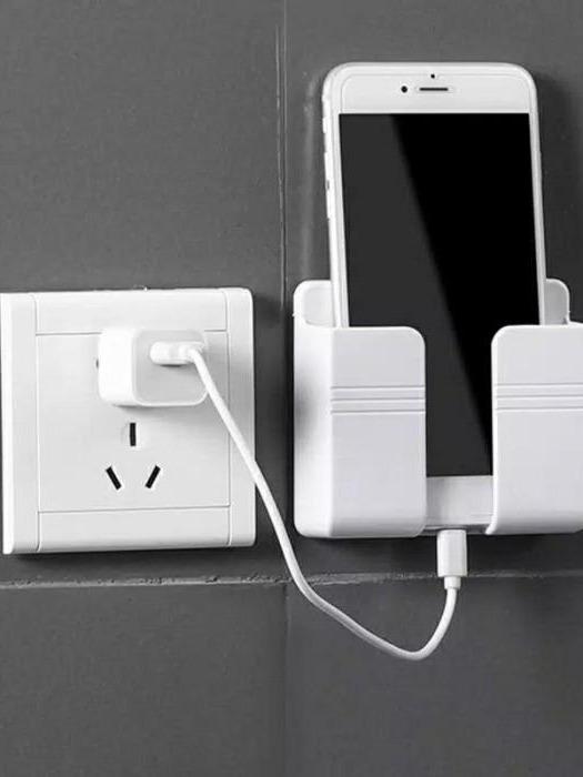 holder hp tempel dinding rak remote Charger tembok Stand phone holder - Putih