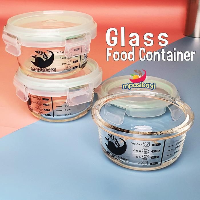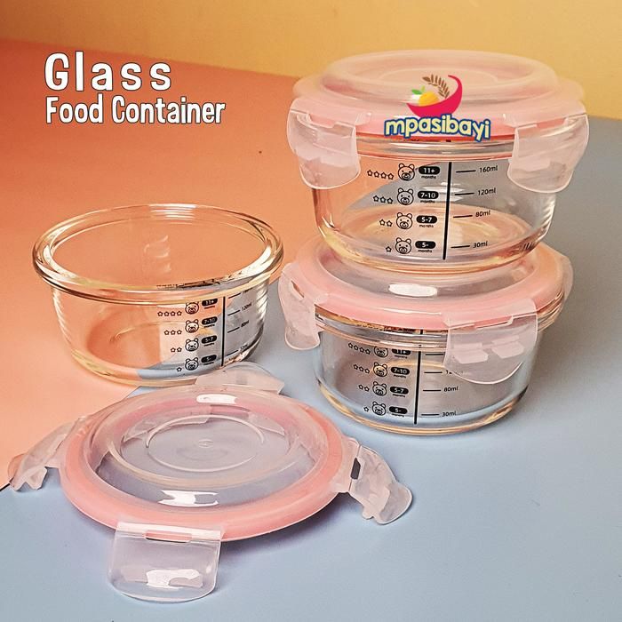Glass food container Kaca mpasi bayi ada takaranya elegan tempat makan - kotak pink