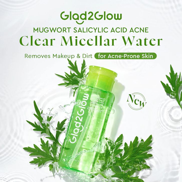 GLAD2GLOW Mugwort Salicylic Acid Acne Clear Micellar Water 300ml For Acne-Prone Skin/Panthenol Sensitive Care / SERENA