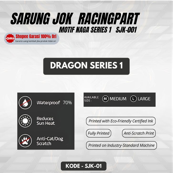 SARUNG JOK MOTOR RACINGPARTS ANTI CAKAR DAN AIR SARUNG JOK FUL PRINT NMAX VARIO BEAT MIO AEROX GENIO