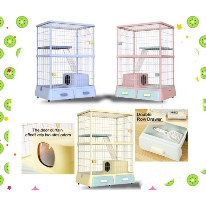 Kandang Kucing Anjing Premium 2 Layer Import Roda + Laci + Drawer Toilet