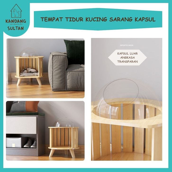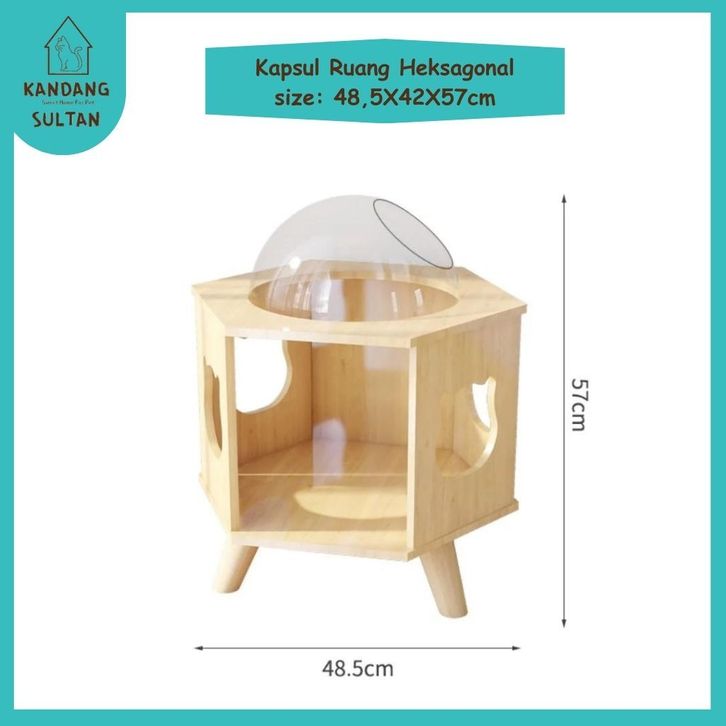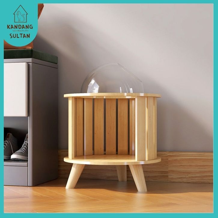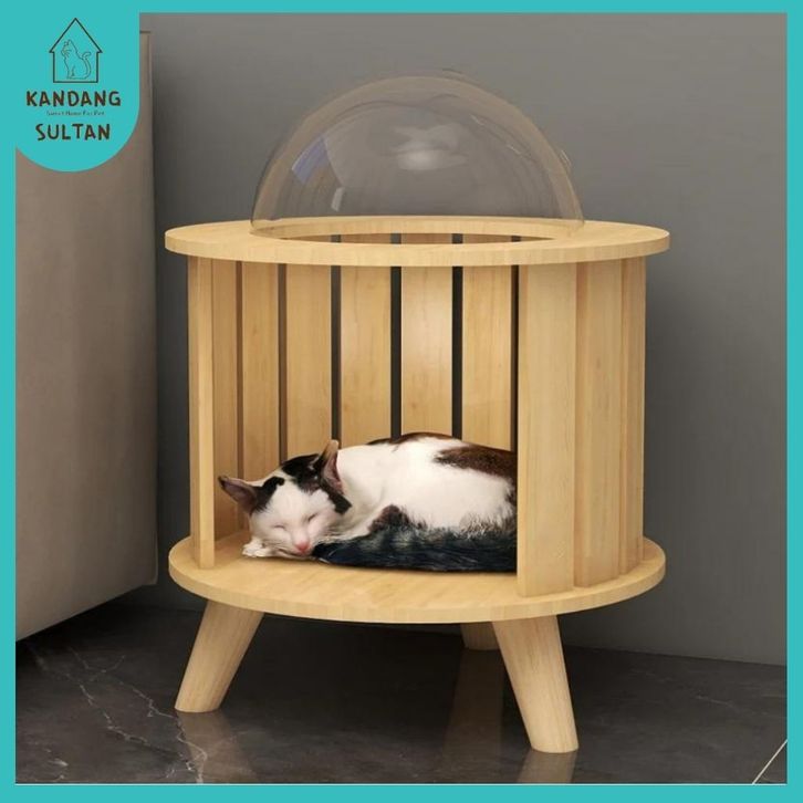Kandangsultan-Tempat Tidur Kucing Oval 48,54257cm Kayu Solid 15mm|Mainan Cat Tree|Cat Condo