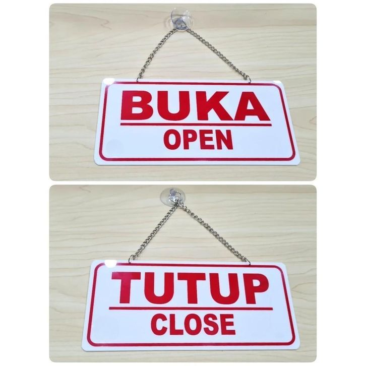 TERLARIS Akrilik Papan Gantung Buka Tutup Open Close Bolak-Balik Tali Siap Pasang 10x20 cm (M1) isifk