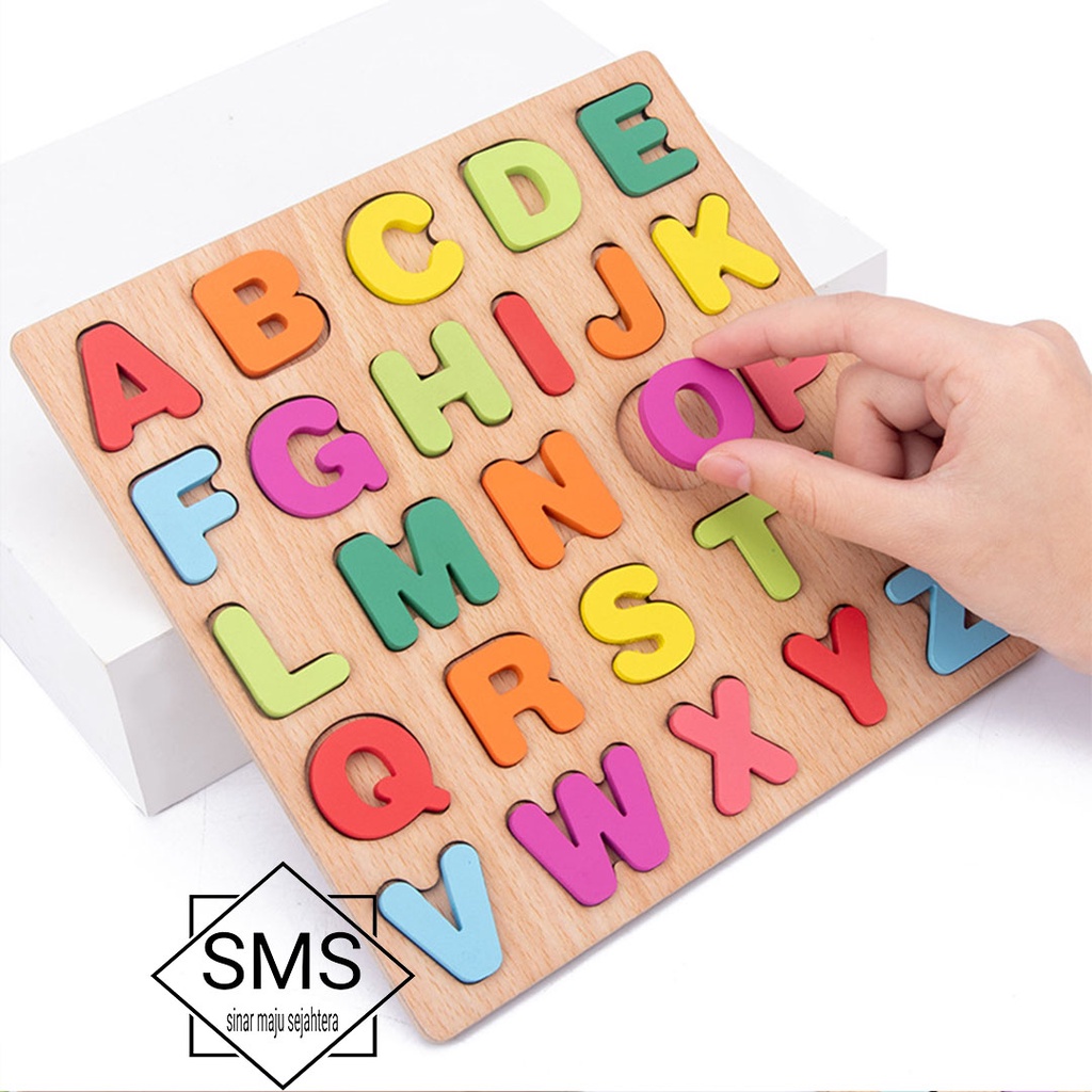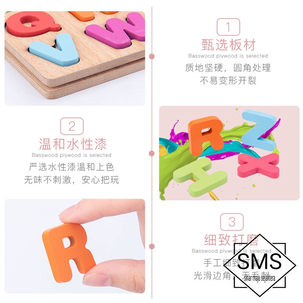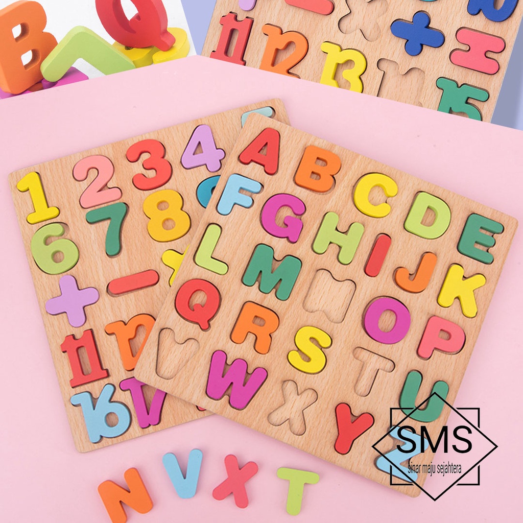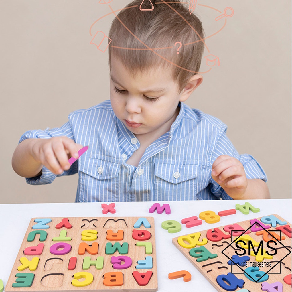 Mainan Anak Chunky Puzzle Kayu ABC and 123 Murah Wooden Alphabet Number Jigsaw 3D Wooden Toys Edukasi