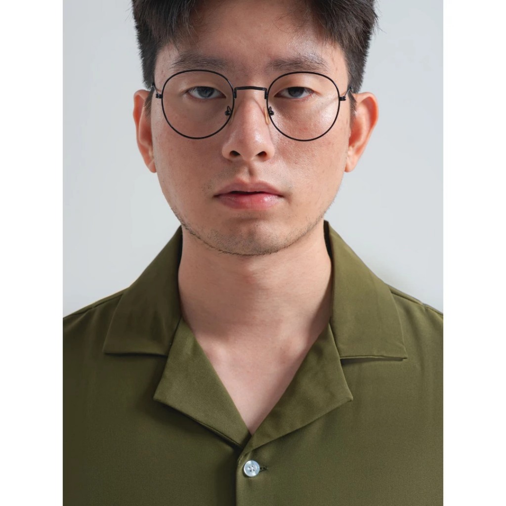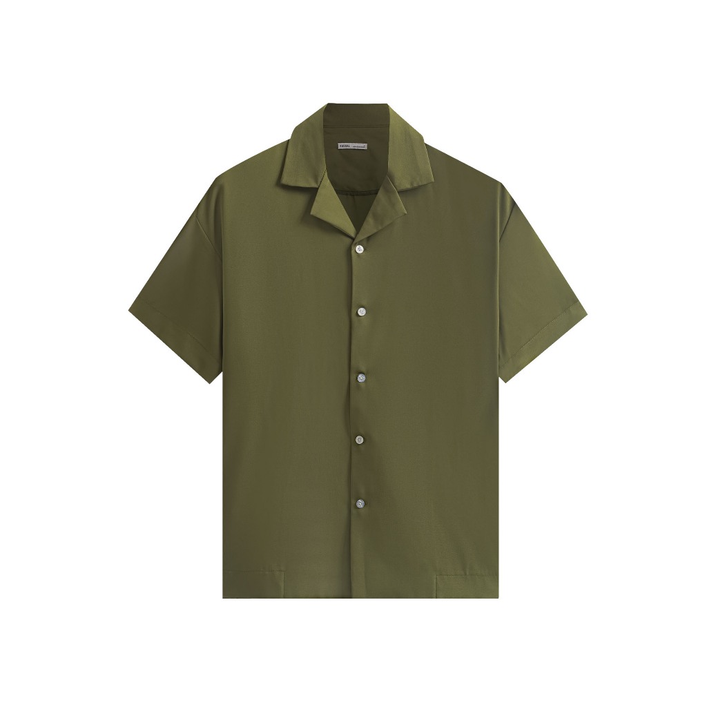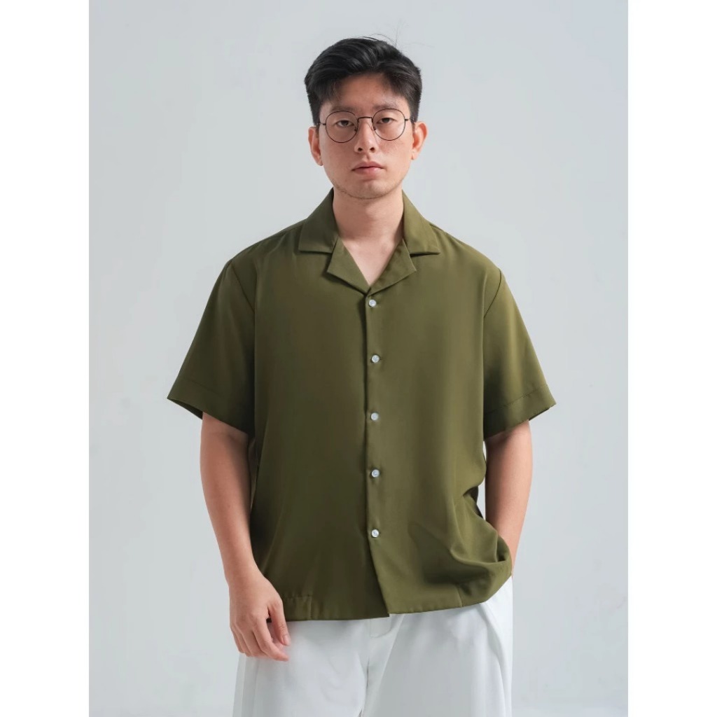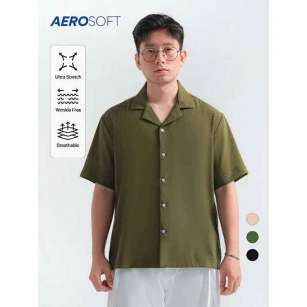Kasual Aerosoft Olive Kemeja Cuban Pria Lengan Pendek