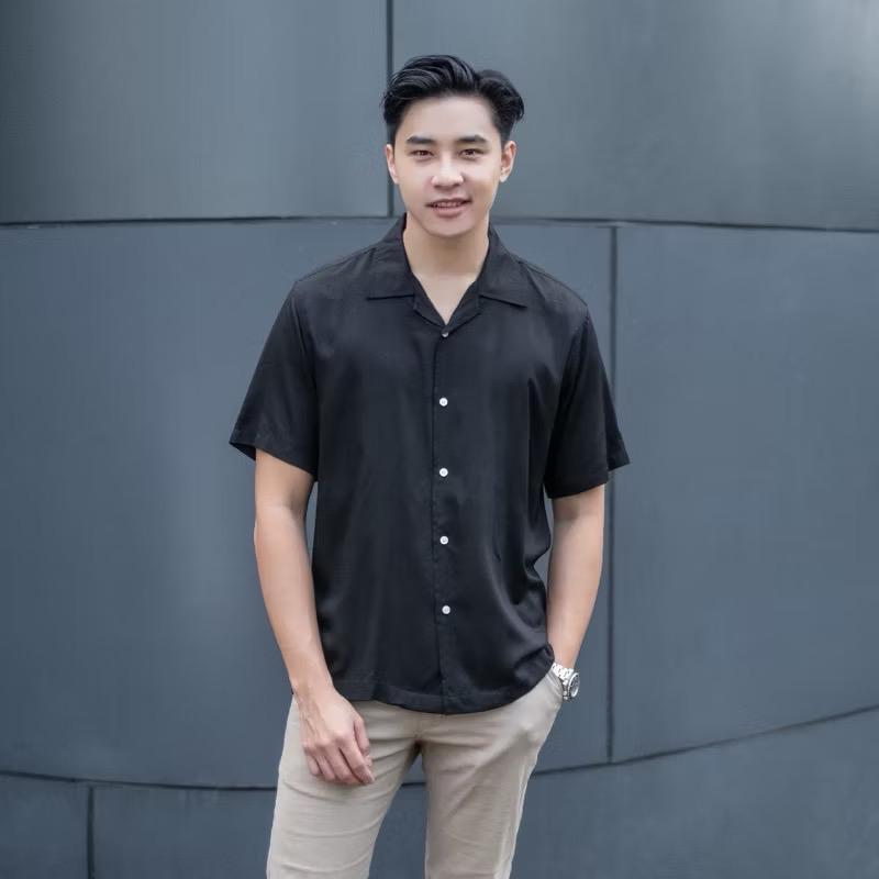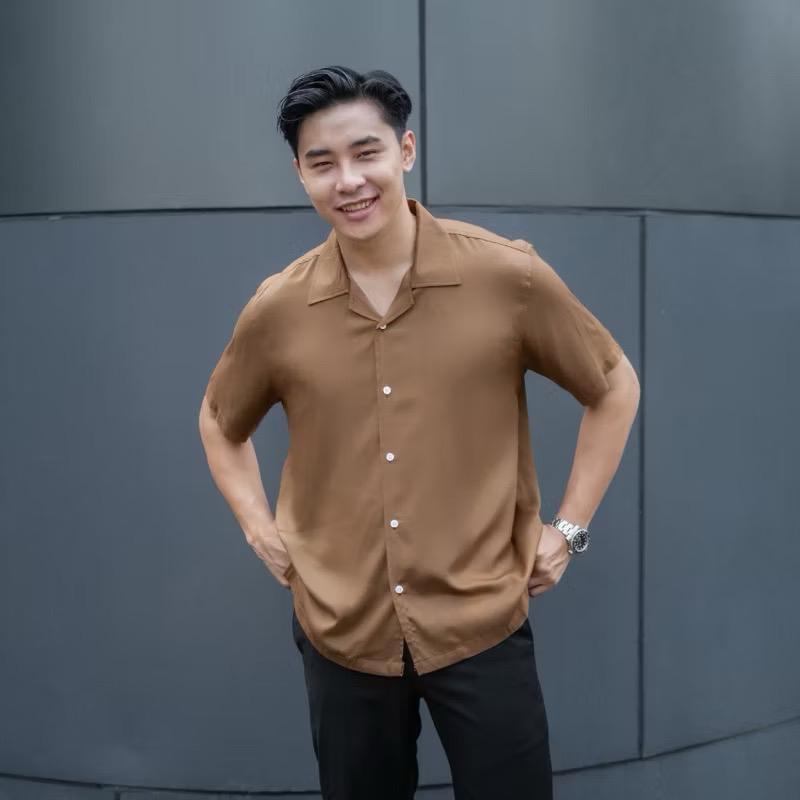 Kemeja Pria Vintage Casual Polos Lengan Pendek Retro Pantai Hawai Unisex / Kemeja Vintage Coklat Laki Laki