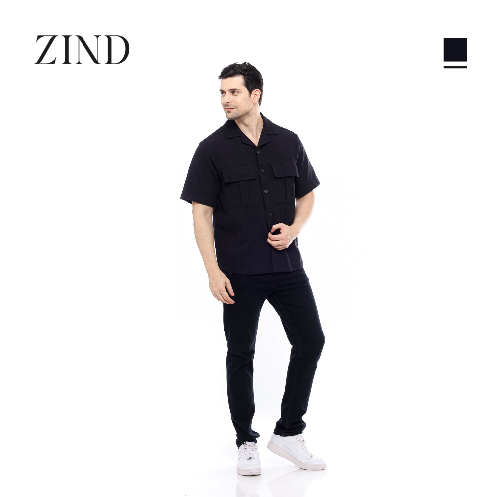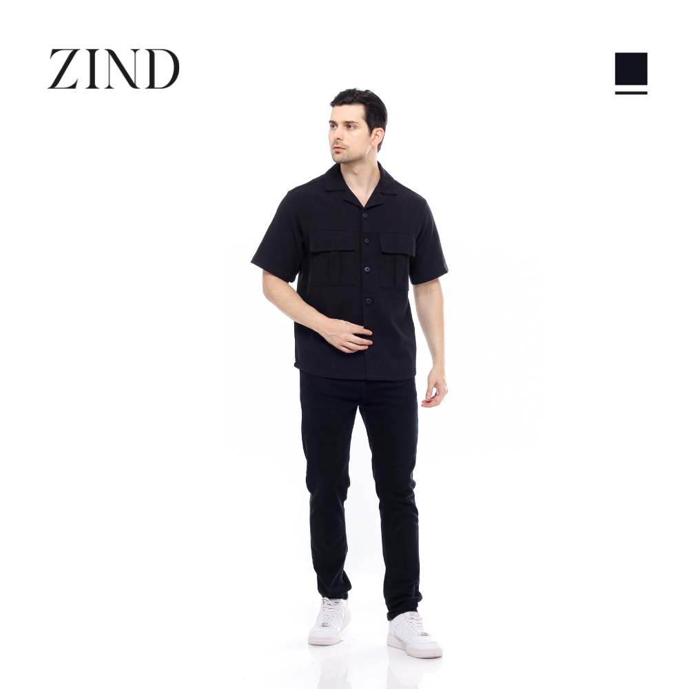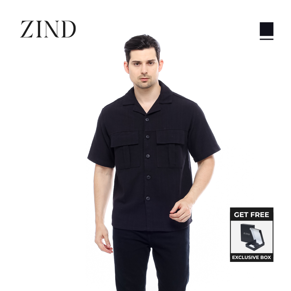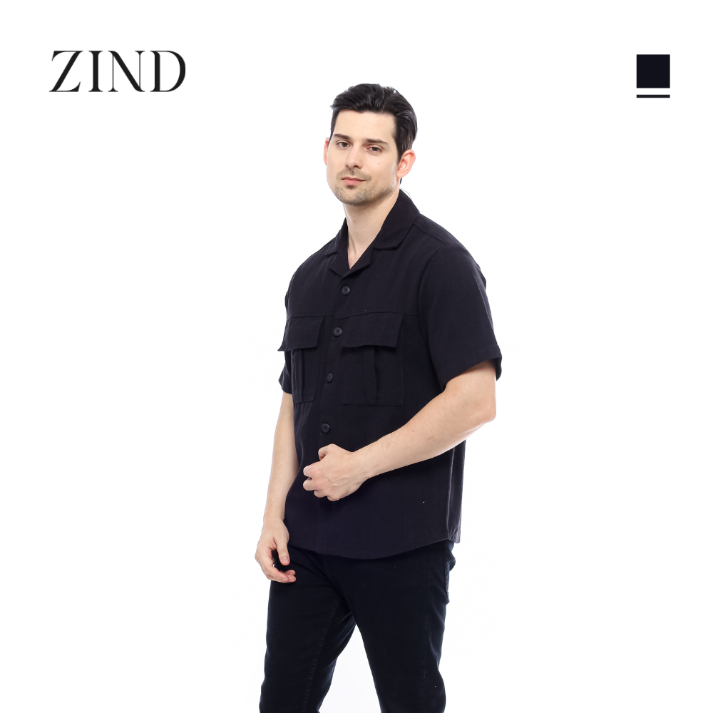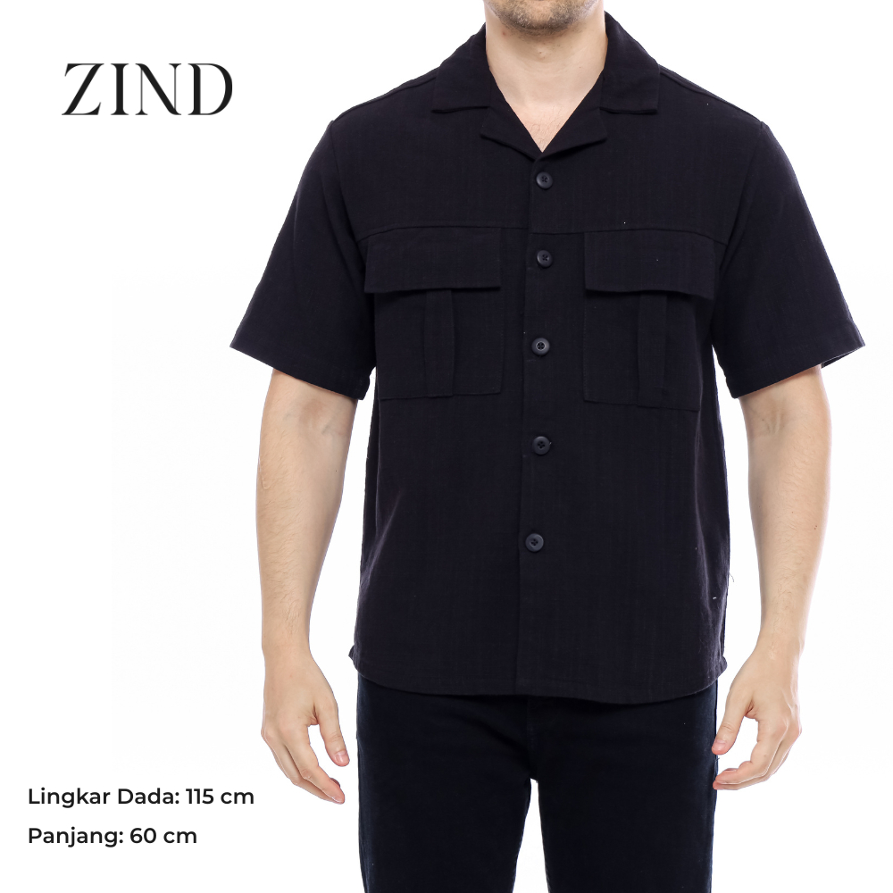 Zind Vermont Series - Kemeja Pria Linen Lengan Pendek Kasual Modern Hitam