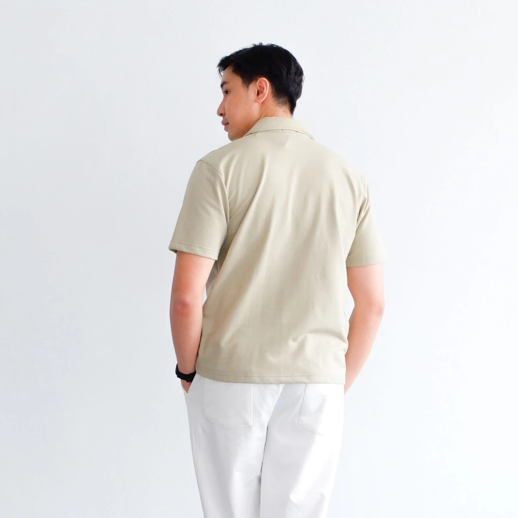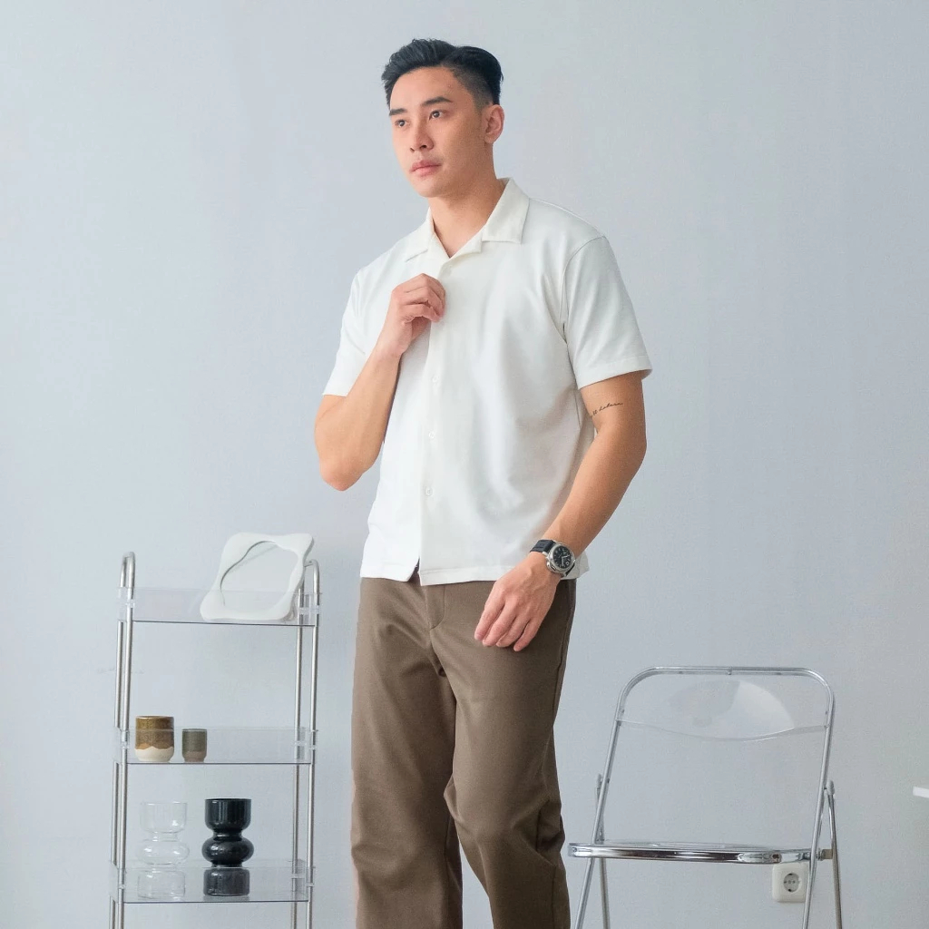 LFRY Kemeja Pria Kerah Terbuka Cuban Collar Lengan Pendek Slim Fit Bahan Katun Adem Bowling Shirt