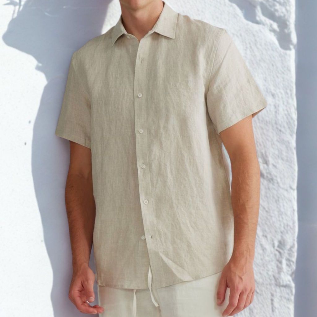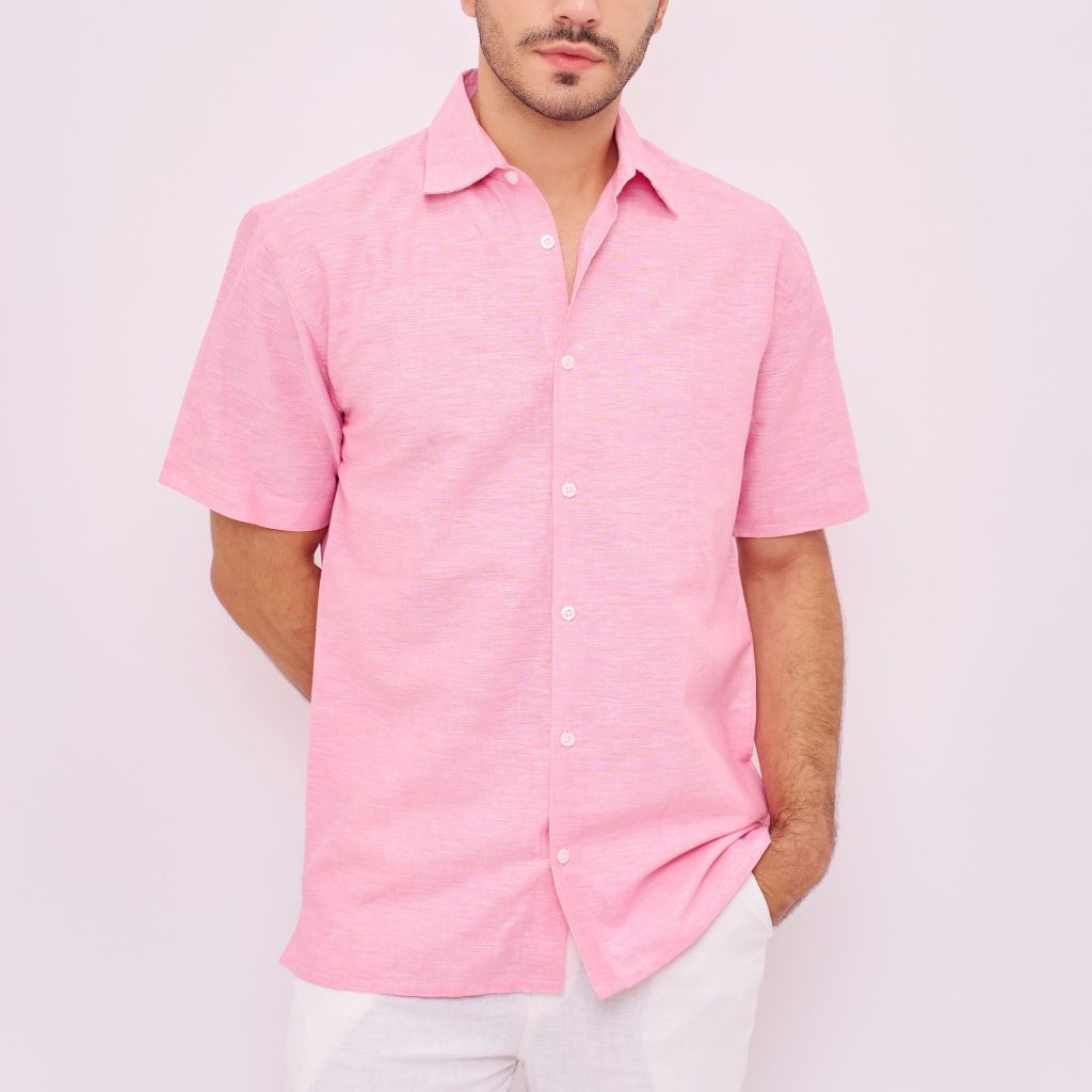 REMEDY Kemeja Linen Pria Lengan Pendek Casual Pilihan Warna Biru Navy Hijau Army Kuning Hitam Pink Peach Putih Merah Kre