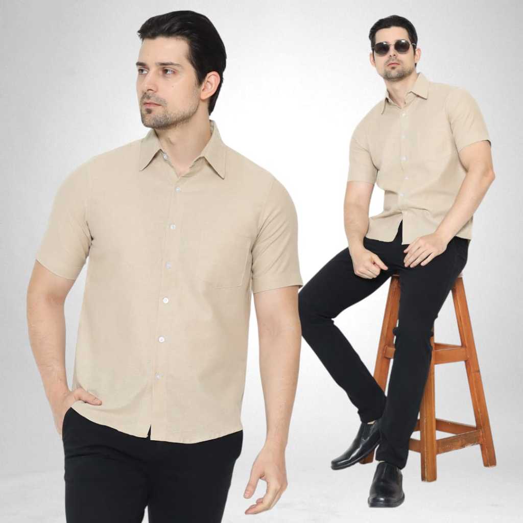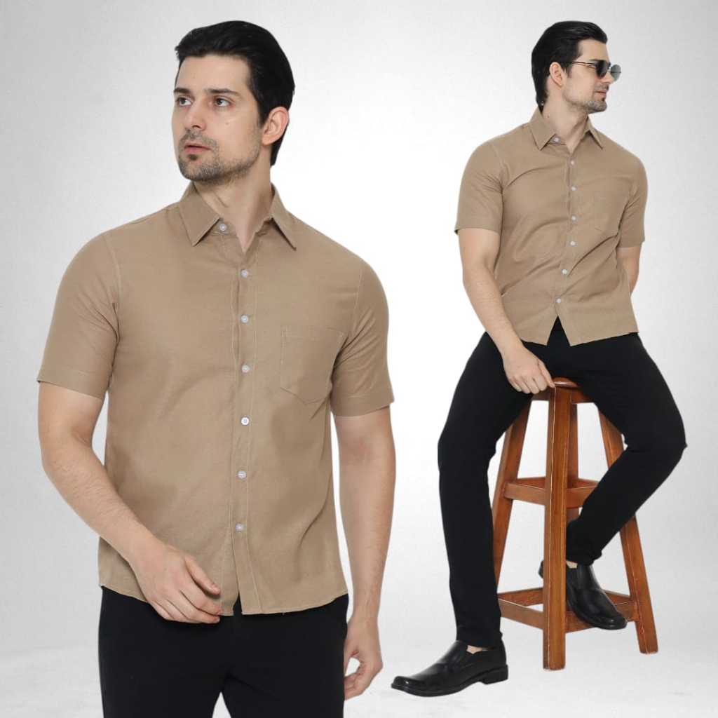 Kemeja Polos Pria Reguler Fit Katun Rami Adem Premium Linen Look Kemeja Cowok Stylish Casual Kerja