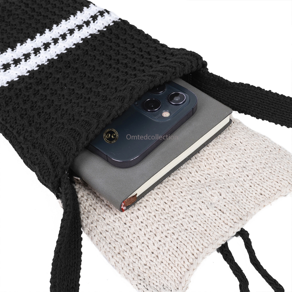 Tas Hp pita hello kitty lucu selempang rajut ukuran 15 cm x 20 cm