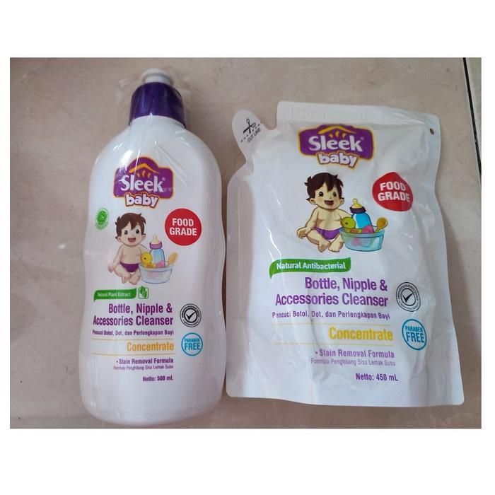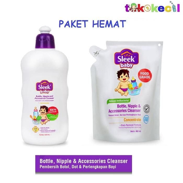Paket Hemat Sleek Baby Bottle Nipple Cleanser Bottle 500mili Pouch 450mili - 08.2025