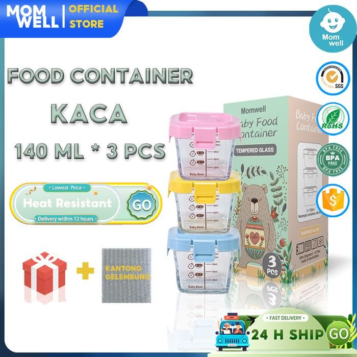 Momwell GFB01 3 IN 1 Tempat Mpasi Kaca Wadah Mpasi Kaca Penyimpanan Mpasi Glass Baby Food Container - Gift Set