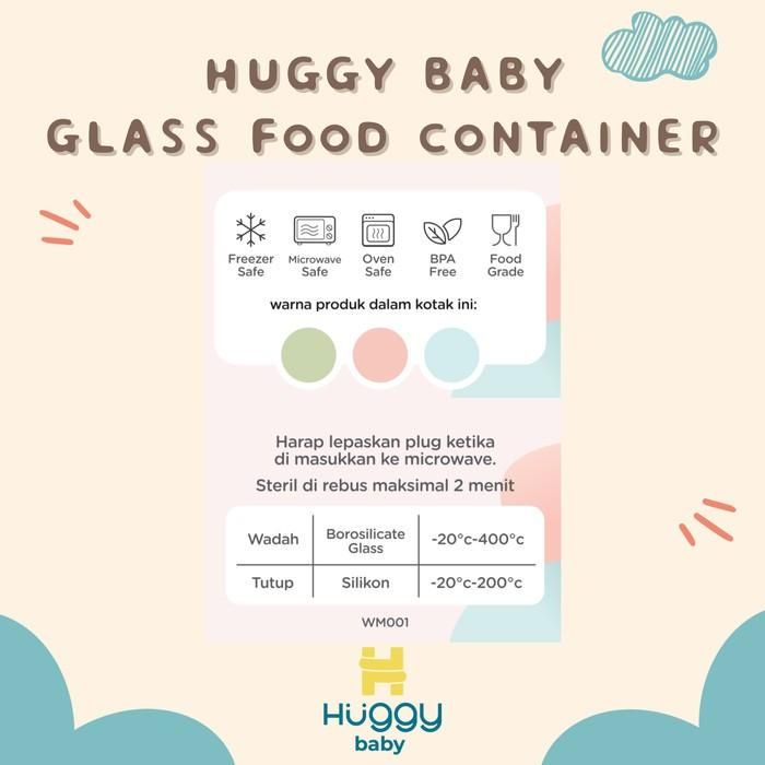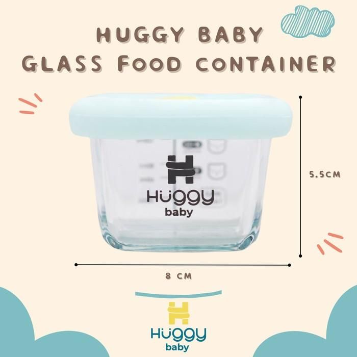 Huggy Baby WM001 Glass Food Container | Wadah Kaca Makanan Anak - Biru