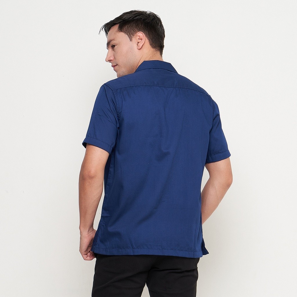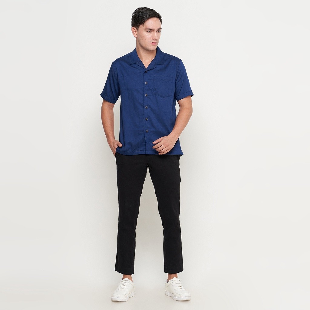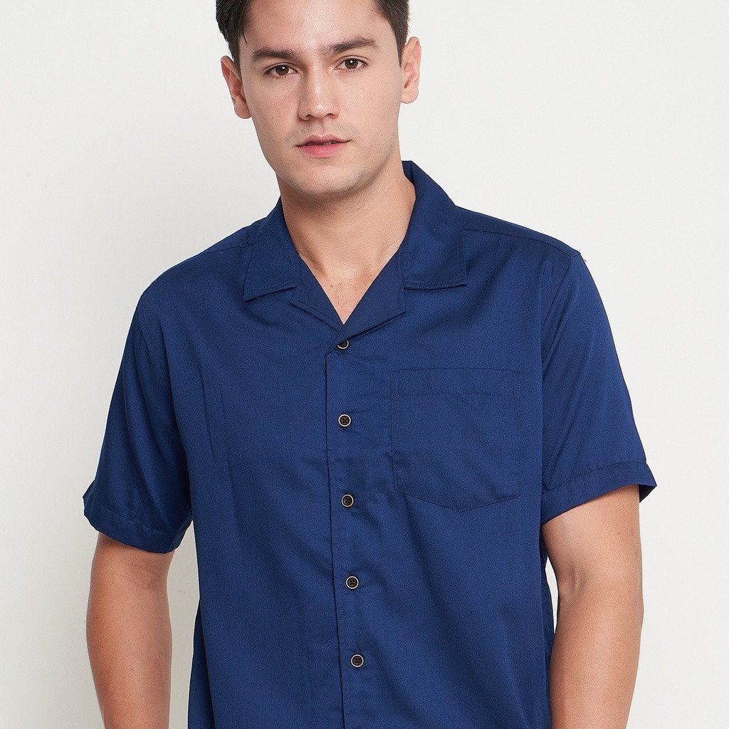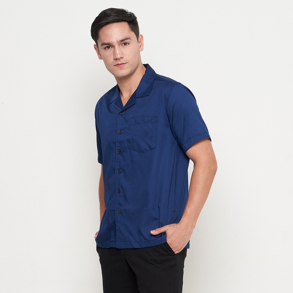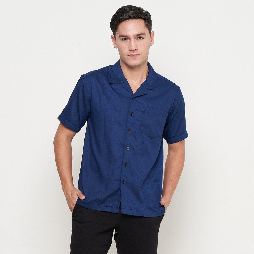 Kemeja Pria Basic Polos Hawaii Lengan Pendek Warna Navy OLR096