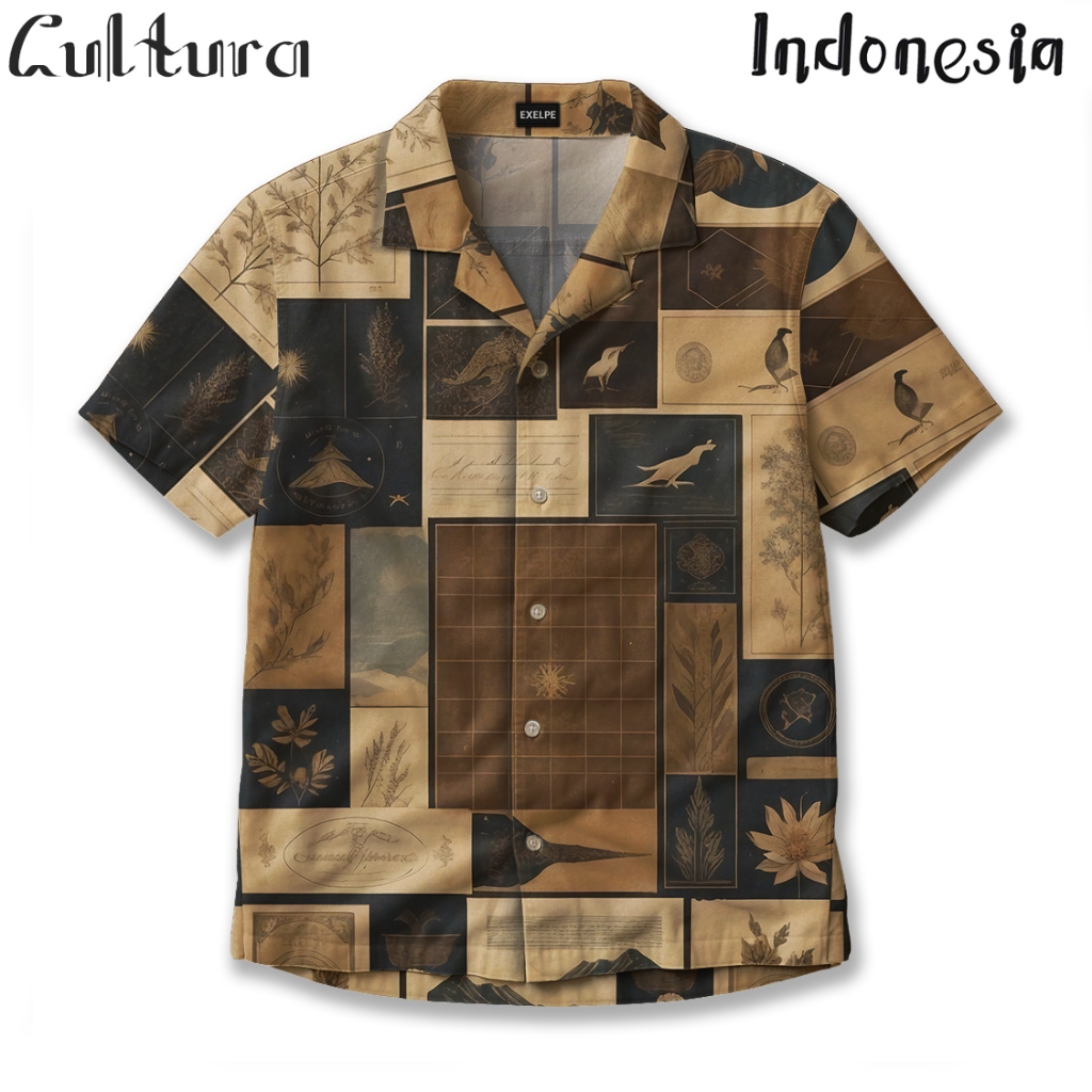 CULTURA Kemeja Fullprint Motif Vintage Botani Earth Tone – Kemeja Unisex Lengan Pendek Klasik Elegan | KAW018