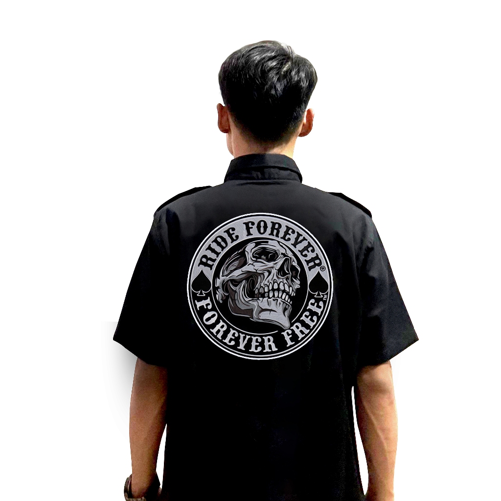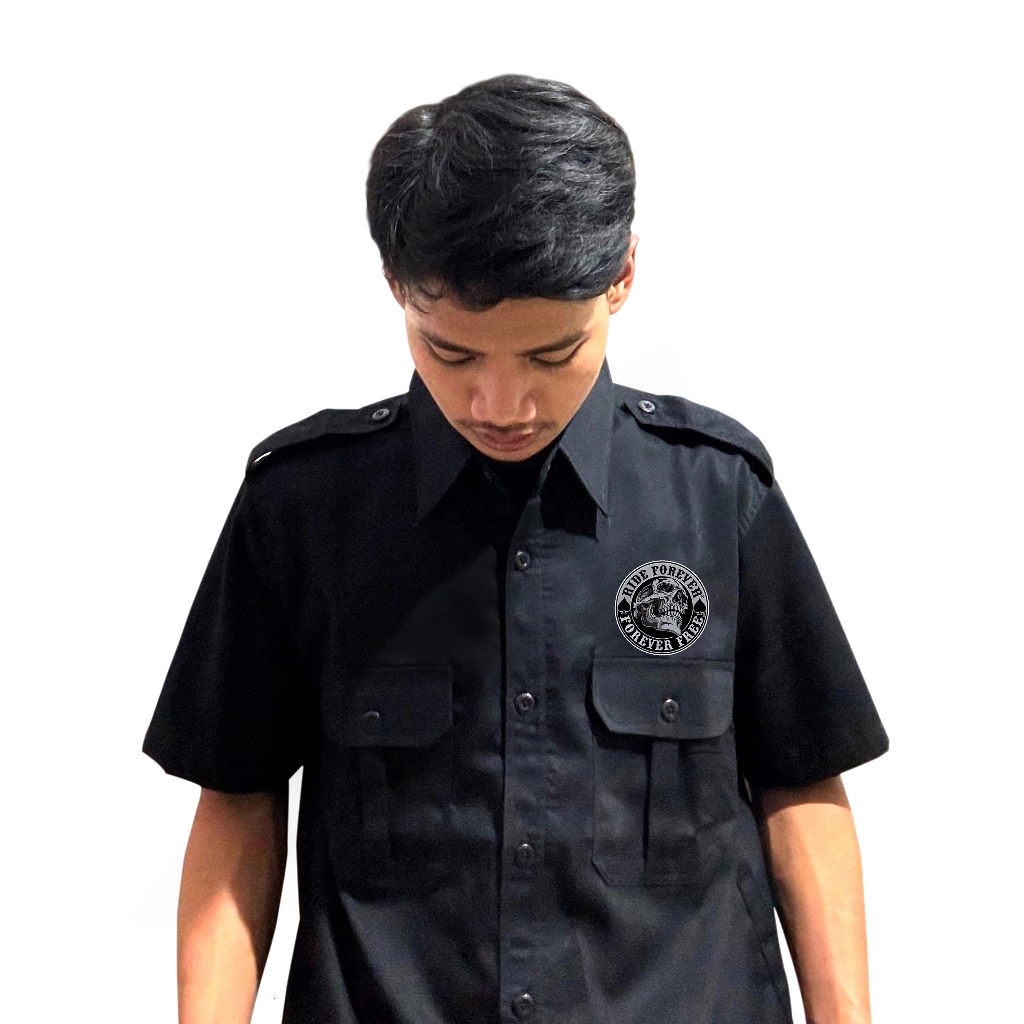 Dhoskie Worktshirt Ride Forefer Vintage | Kemeja Lengan Pendek Unisex | Kemeja Kerja Hitam
