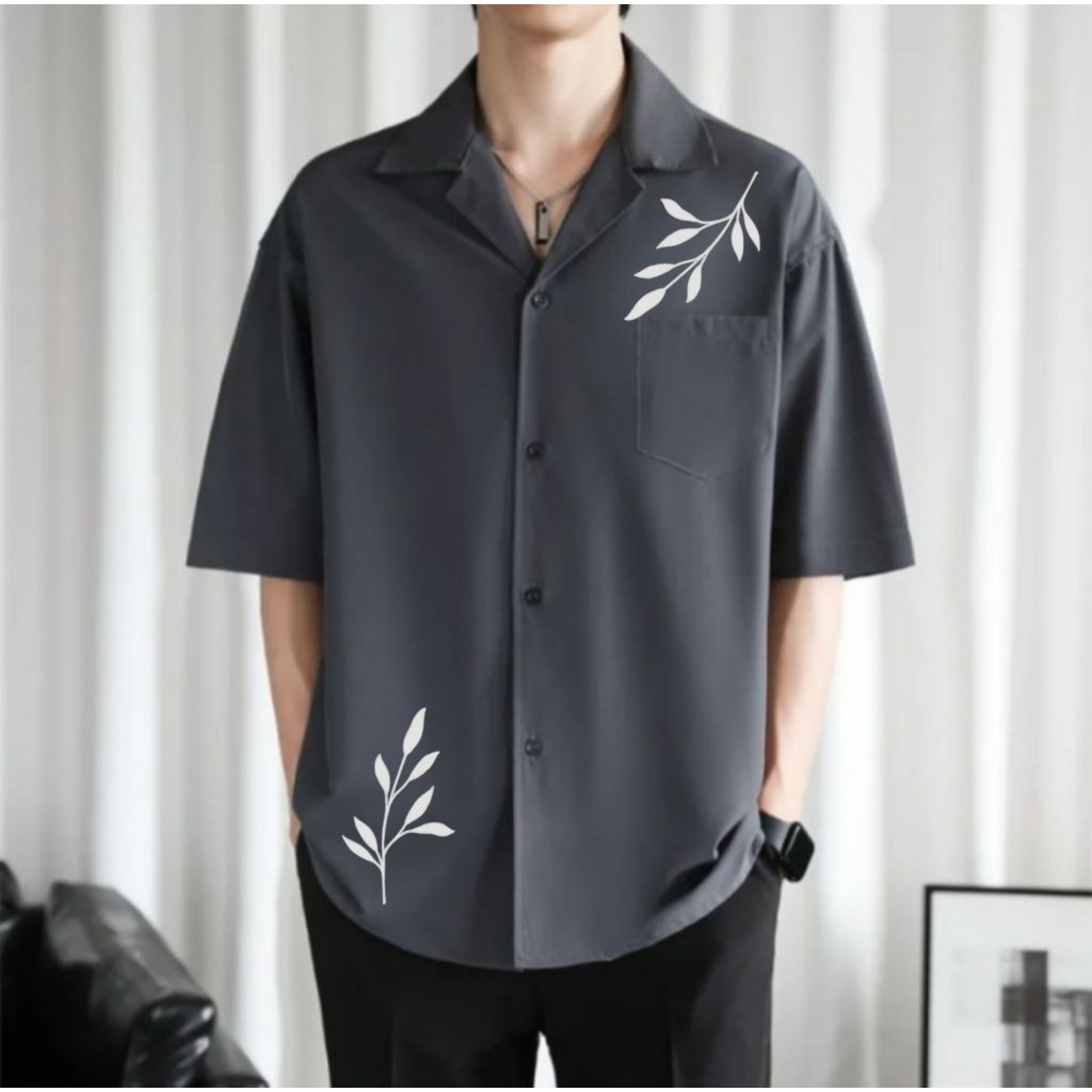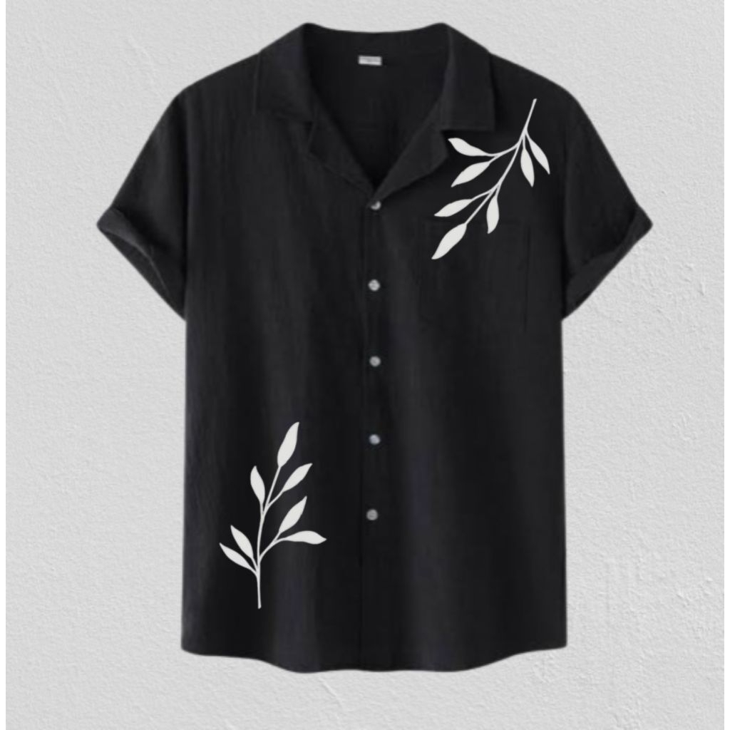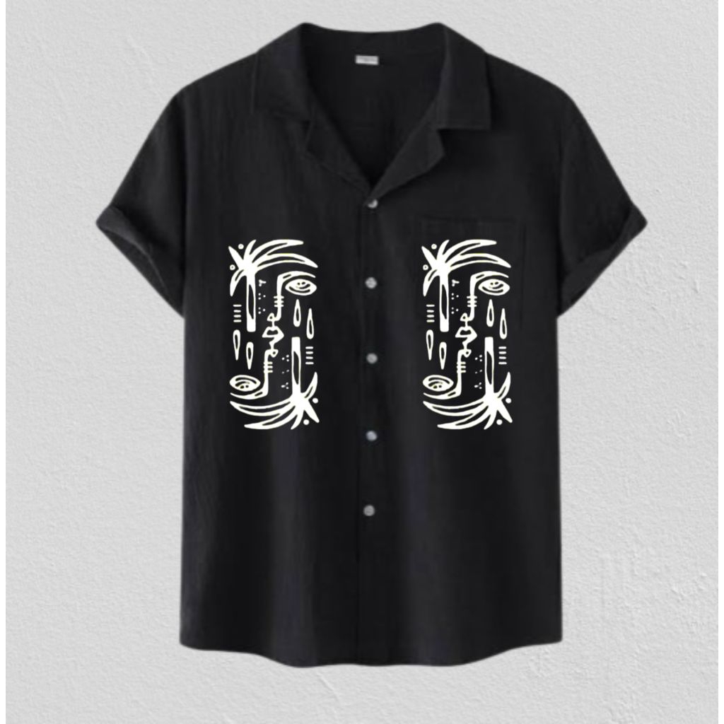 Kemeja Pria Vintage Lengan Pendek Motif Full Printing Kemeja Hitam Korean Style