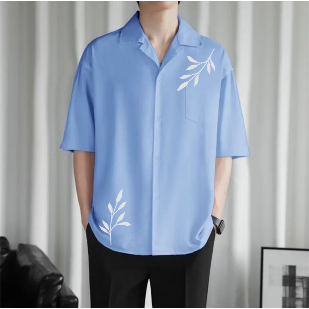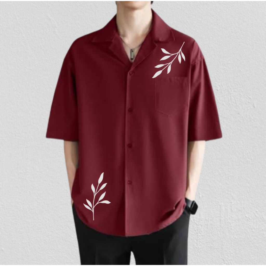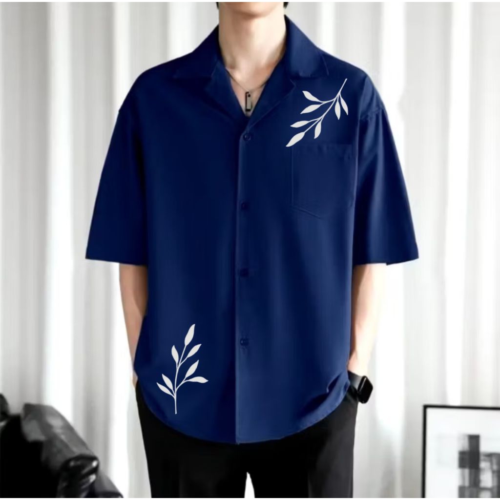 Kemeja Pria Vintage Lengan Pendek Motif Full Printing Kemeja Hitam Korean Style