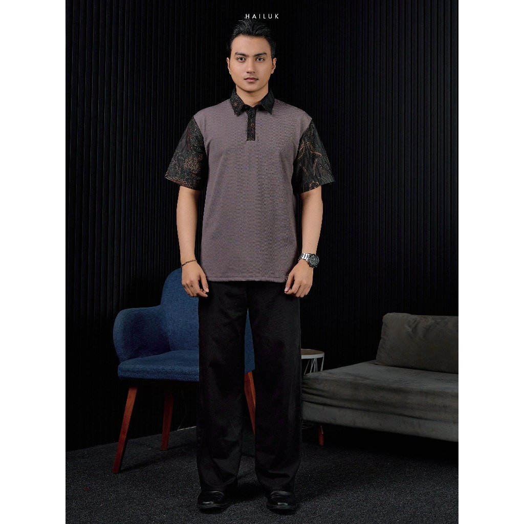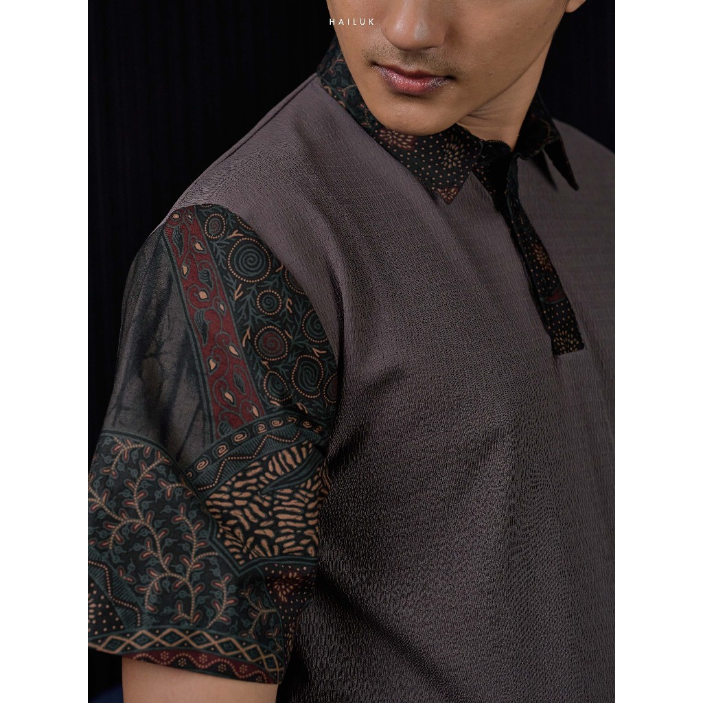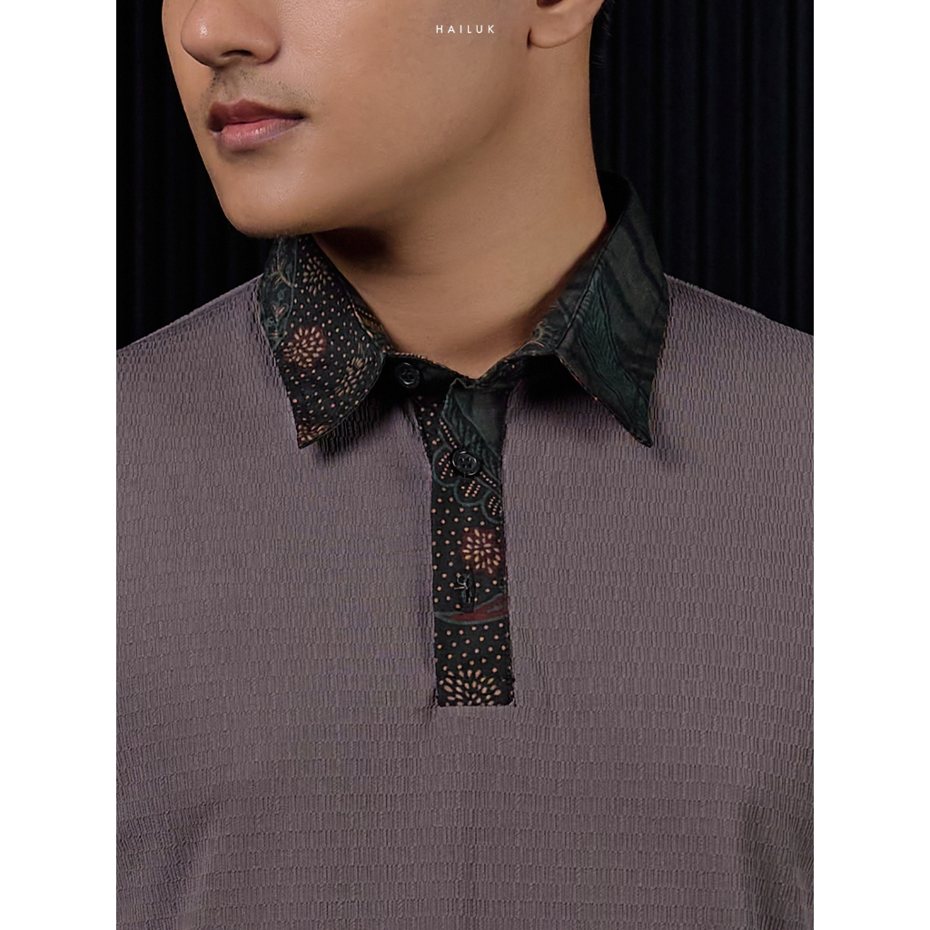 HAILUK Devan Dark Grey Kemeja Polo Batik Premium Slimfit Lengan Pendek