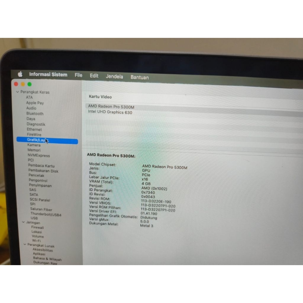 MACBOOK PRO 16 IN 2019(TOUCHBAR) RAM32 SSD512 COREI7 2 VGA INTEL & AMD RADEON MULUS