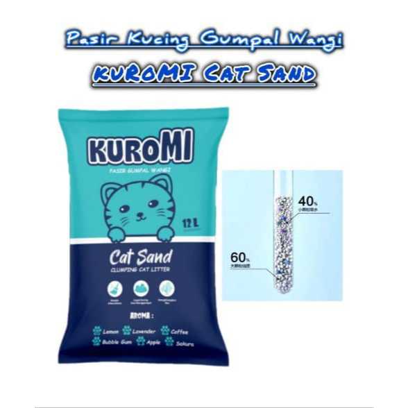 12 Liter KUROMI Cat Litter-Pasir Kucing Gumpal Wangi Anti Bakteri Aroma Segar-Free Gift Menarik