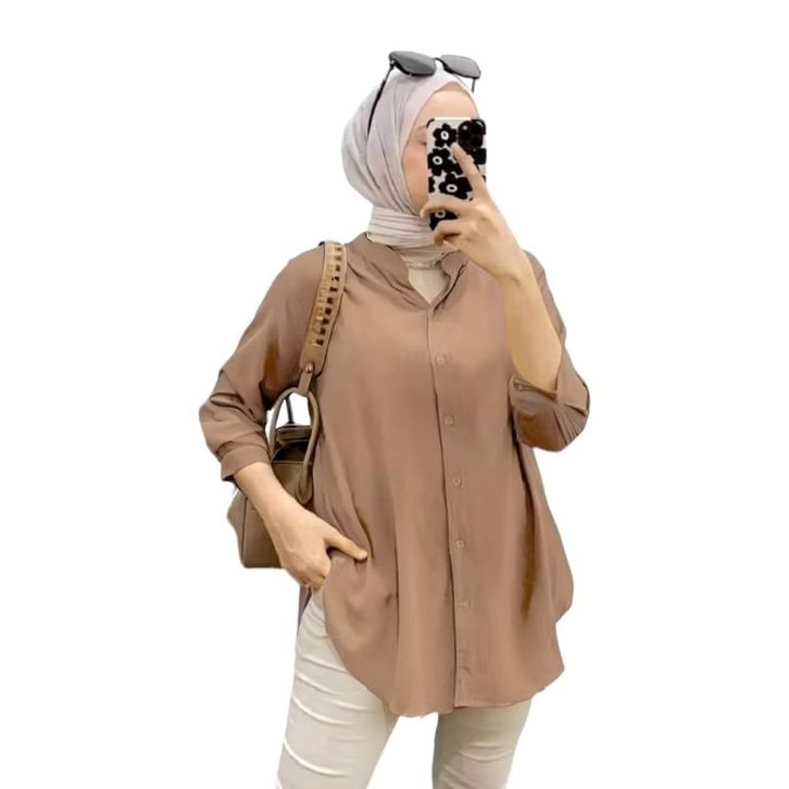 Kemeja Wanita Rayon Twill - kemeja Blouse Oversize Shirt Polos