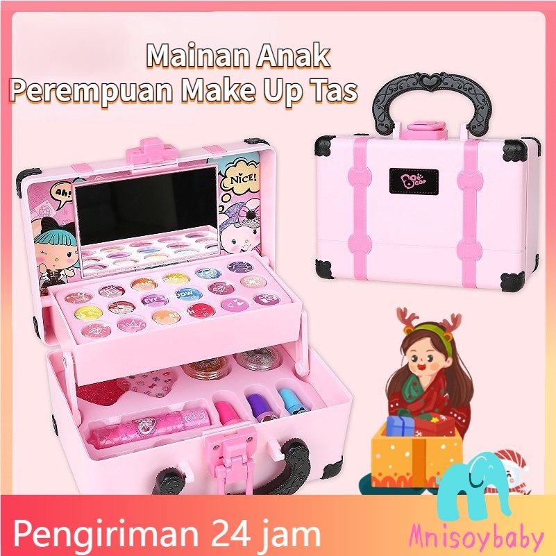 Mainan Anak Perempuan Make Up Tas Kosmetik Lipstik Eye Shadow Makeup Set Kosmetik Peralatan Kecantikan Tidak Beracu