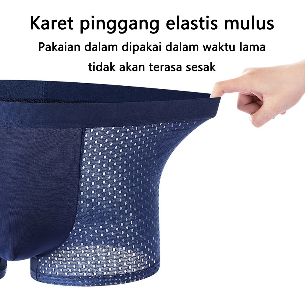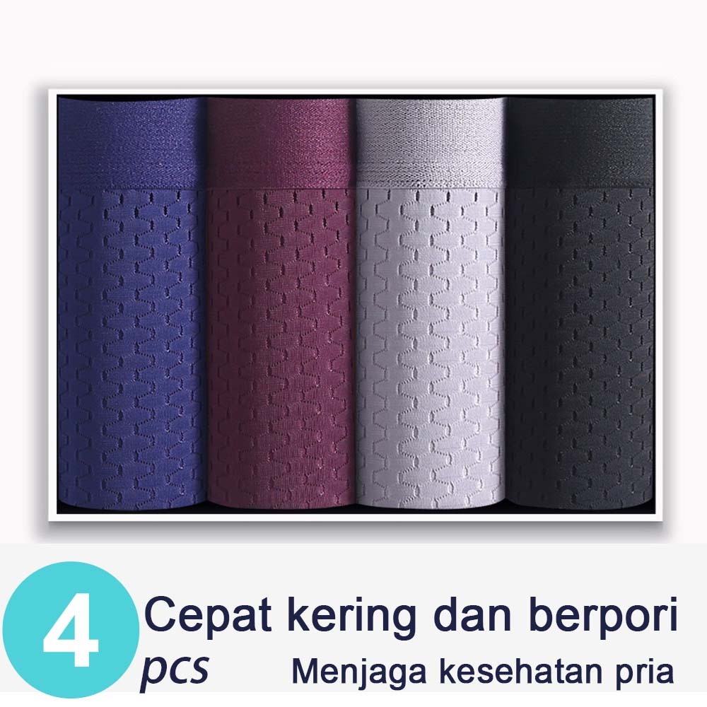 CD01 4PCS Celana Boxer Pria Es Bernapas Sutra Celana Dalam Biasa Spandex Boxer
