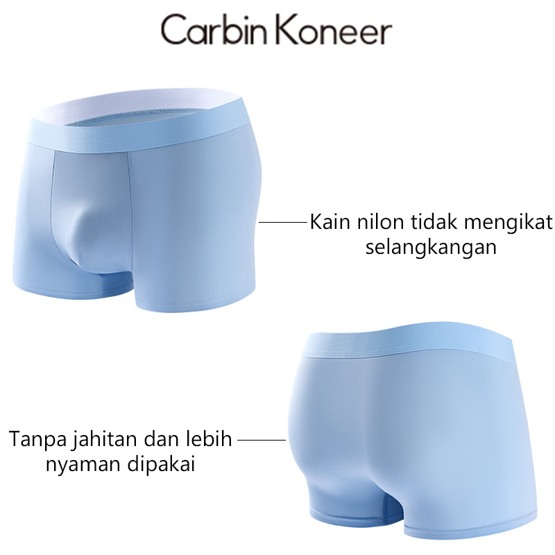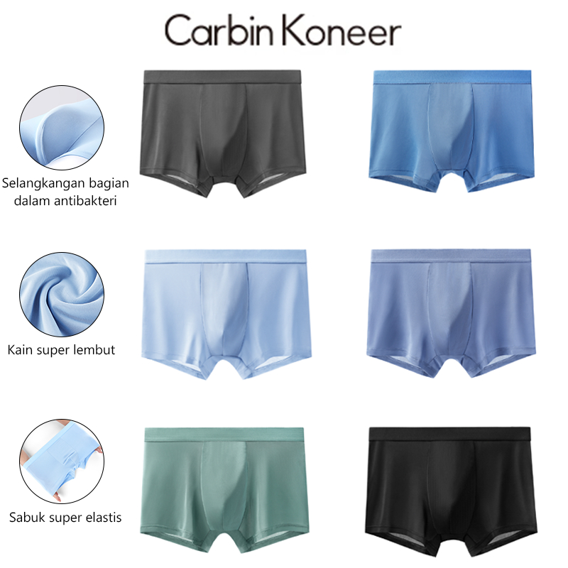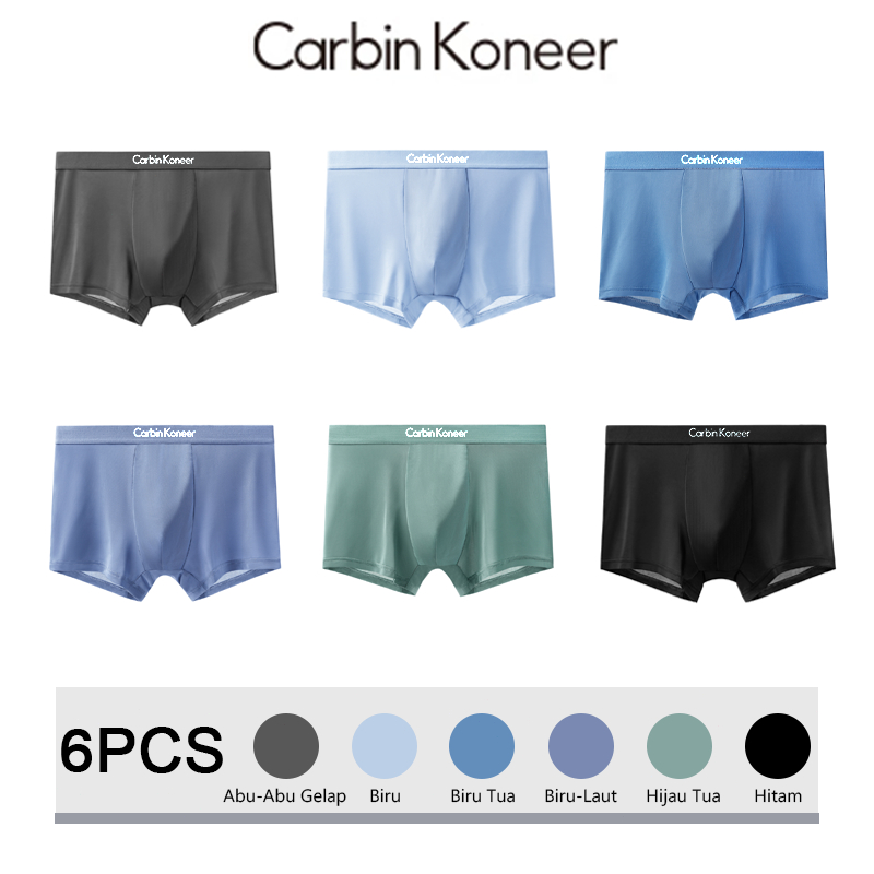 Carbin Koneer ISI 6PCS Celana Dalam Boxer Nilon Antibakteri Pria Plain Tipis Dan Bernapas