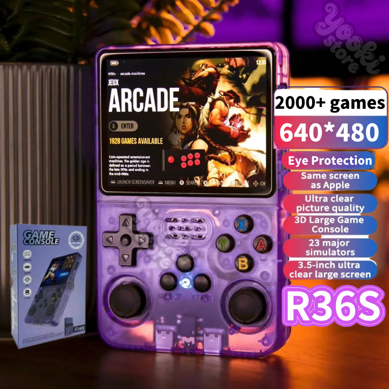 R36S Retro Game Console 3.5" Ips 2000 Games Linux Open Source Portable Untuk Anak Dewasa