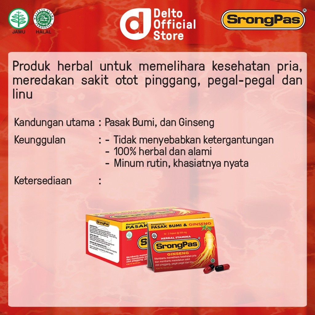 Srongpas Tablet Kapsul Herbal - Pasak Bumi Ginseng Kesehatan Stamina Pria Sakit Otot Pinggang Pegal Linu