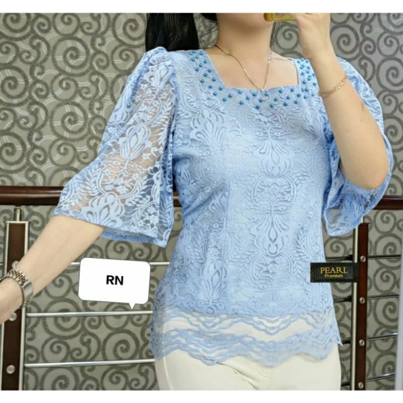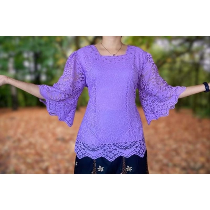BLOUSE KEBAYA LENGAN KEMBANG TERBARUATASAN WANITA KEKINIAN,ATASAN WANITA TERLARIS,ATASAN BROKAT MEWAH,BLUS KEBAYA