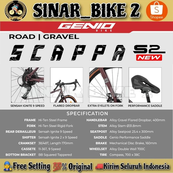 TERBARU Sepeda Gravel GENIO SCAPPA S2 NEW 700C 18 Speed Road Bike