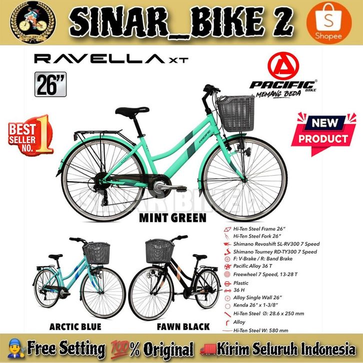 TERBARU Sepeda Mini Keranjang CTB PACIFIC RAVELLA XT Ukuran 26 Inch 7 Speed Shimano Boncengan