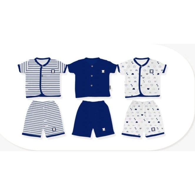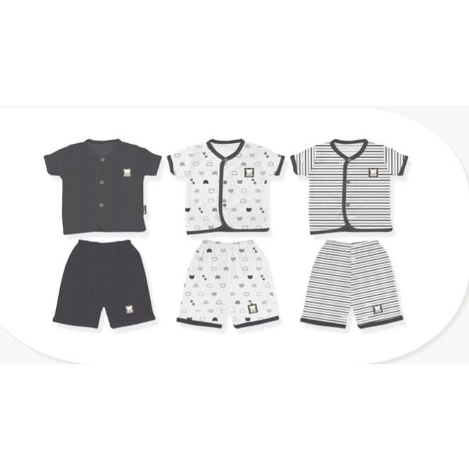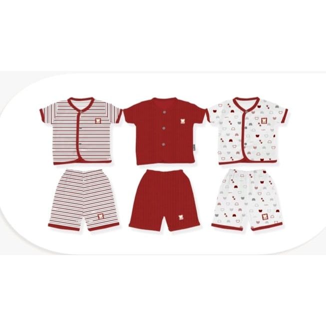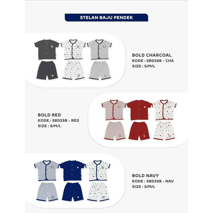 NEW FLUFFY 3 Setel Baju Pendek & Celana Pendek Bayi Size S M L 3-12 Bulan BOLD SERIES / SNI