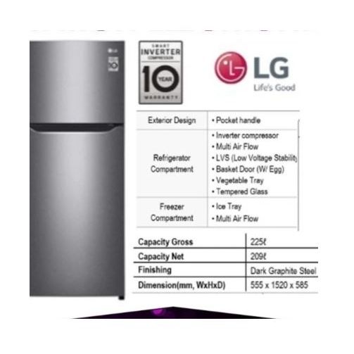 Kulkas LG GN-B222SQIB Inverter 2 Pintu B222SQIB Depok dan sekitarnya Terlaris New