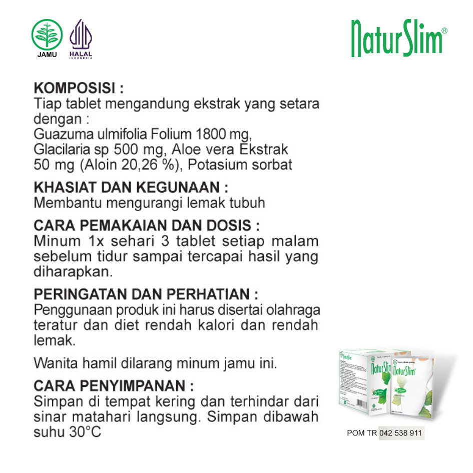 Natur Slim Sachet Isi 30 Tablet Gratis Hadiah Special Suplemen Diet Herbal - Mengurangi Lemak Tubuh Pria & Wanita (Rumpu