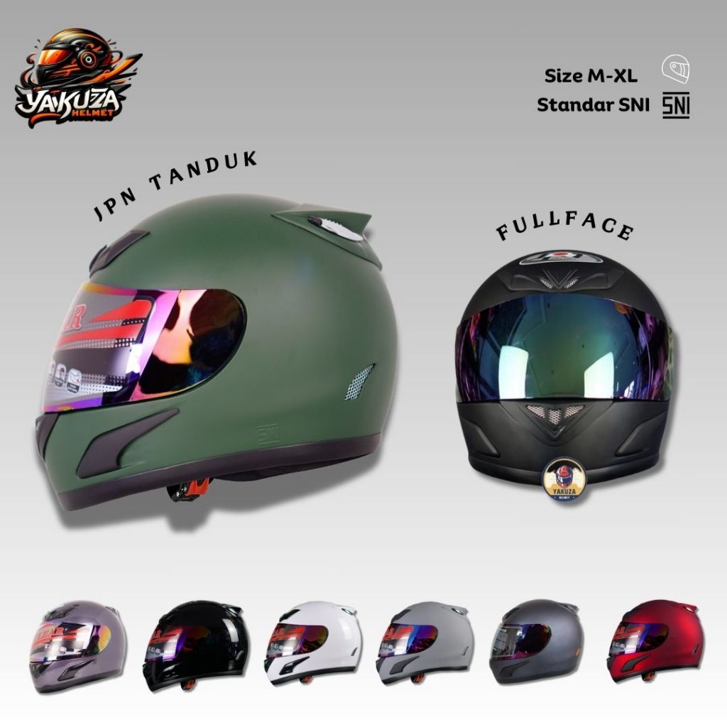 HELM FULL FACE JPN TANDUK SOLID/POLOS VISOR IRIDIUM PELANGI ORIGINAL SNI