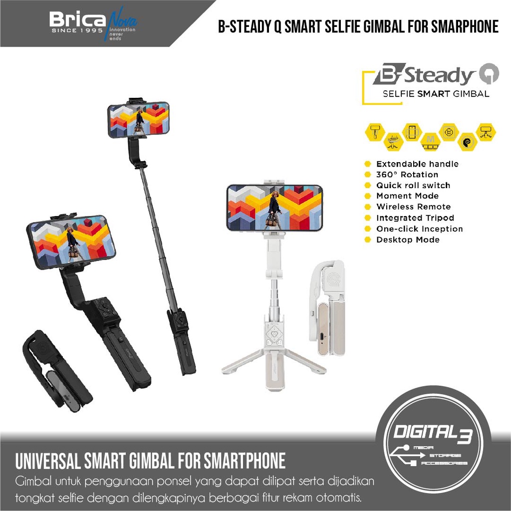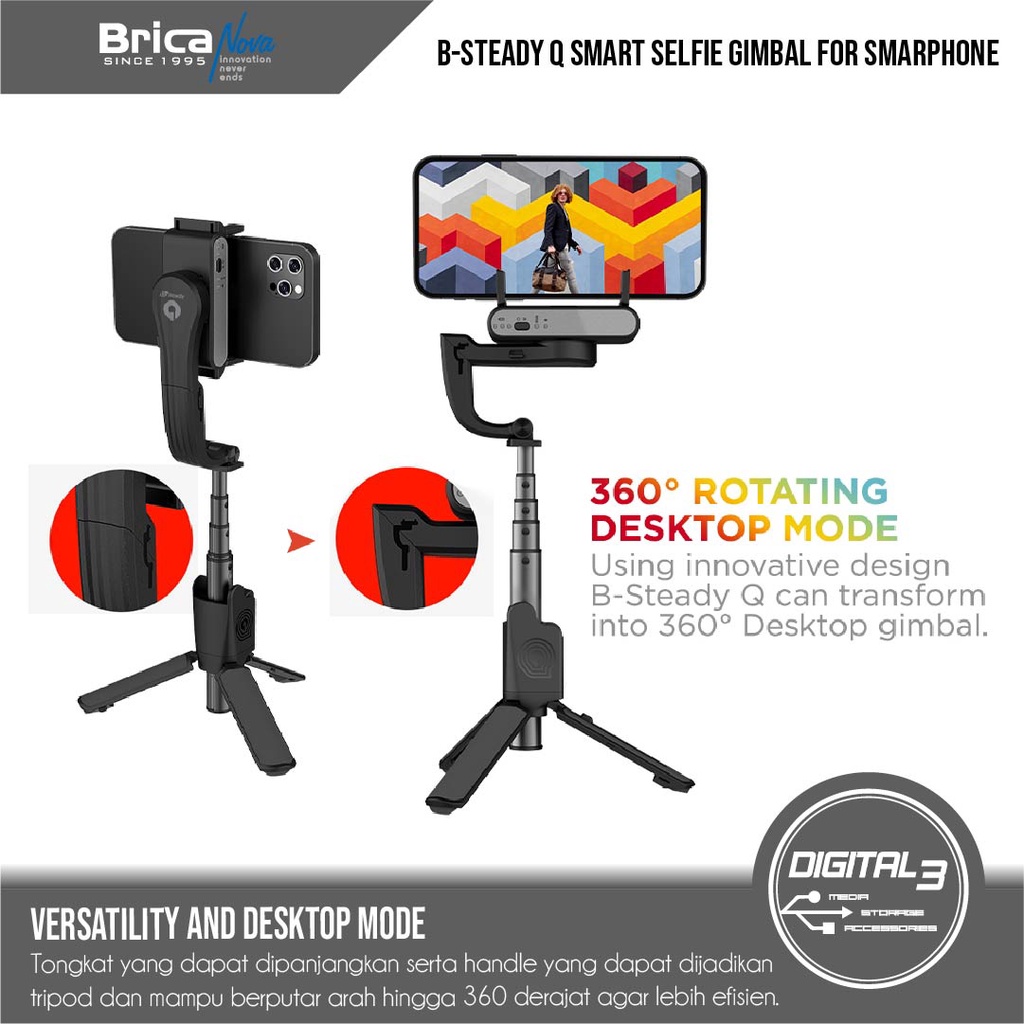 Brica B-Steady Q Selfie Smart Gimbal Phone Hp 360 Stabilizer B Steady