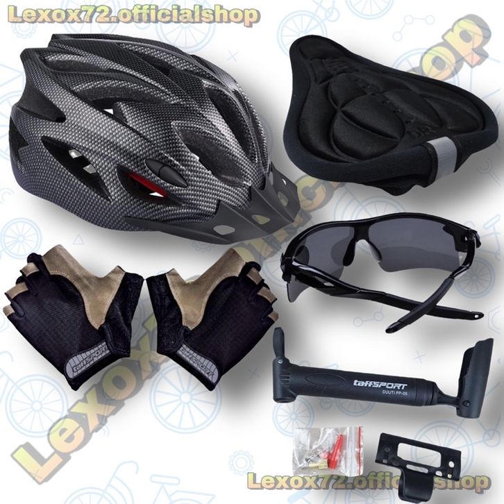 TERBARU Helm sepeda MTB seli roadbike / paket 5 item red/carbon
