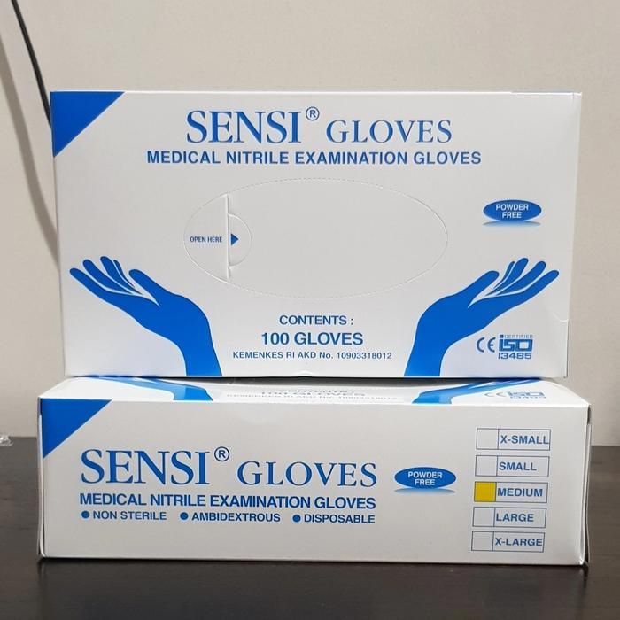 SARUNG TANGAN SENSI GLOVES POWDER FREE/NON POWDER 100 PCS NITRILE BIRU