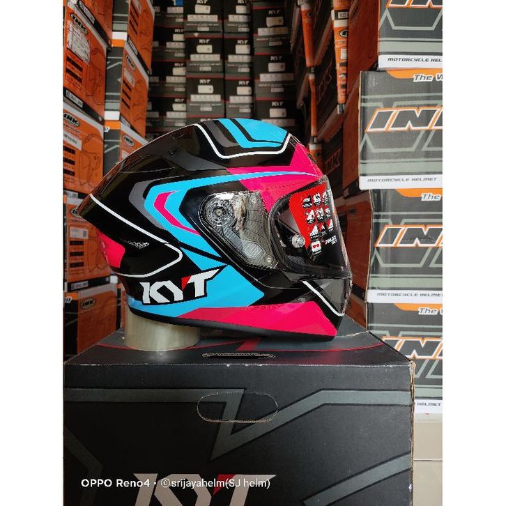 HELM KYT TT COURSE OVERTECH BLAK/FUXIA/BLAK/BLUE/PING VISOR PINCLOK NEWS 2020